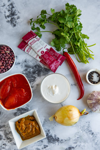 Add your beans, water, chopped onion, garlic, tomato and curry paste to an instant pot. cook on high pressure for 40 minutes then let the steam release naturally.