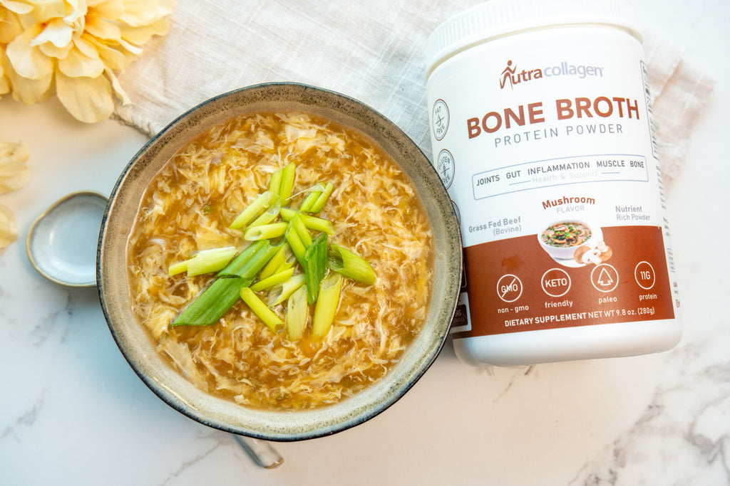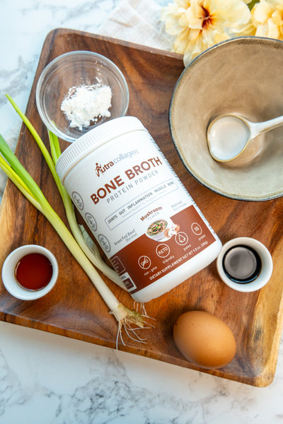 • 1 scoop Nutra Collagen Mushroom Bone Broth Collagen