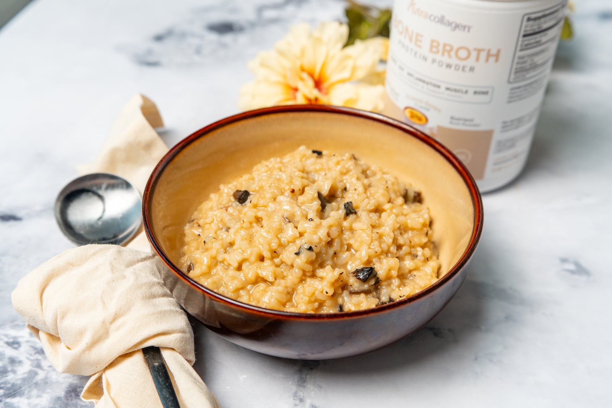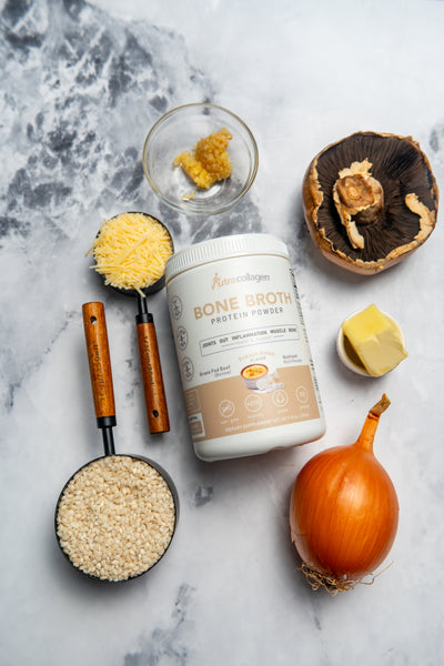 Pour in water and stir in 2 scoops of Nutra Collagen bone broth powder until dissolved.